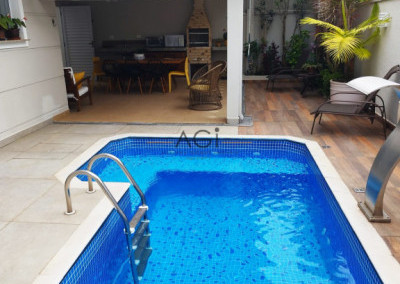 Espaço gourmet com piscina e churrasqueira