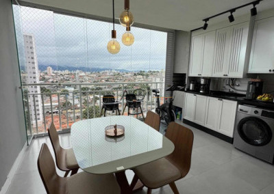 Sacada com fechamento em vidro;