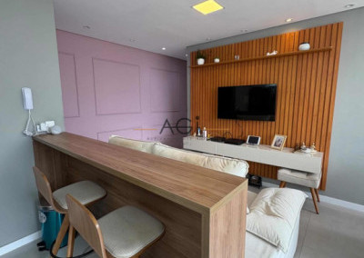 Sala de TV com painel planejado;